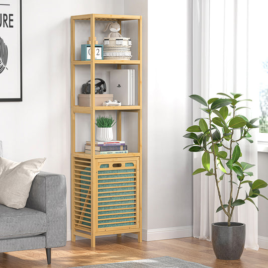 4-tier Bamboo Tilt-out Cabinet Laundry Hamper With Basket, Shelves (Green Bag)