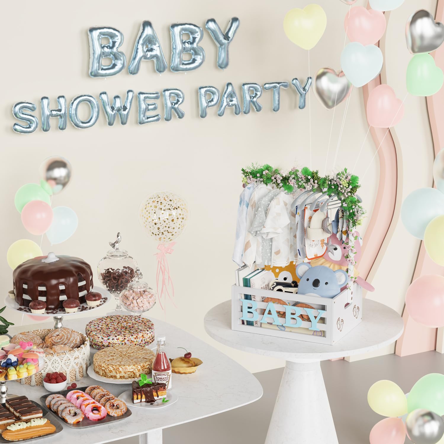 - Dual Function: This small shower party basket with handle offers dual functionality of storage and hanging. Compared to other gift containers that only provide storage, our baby shower crate box comes with a spacious crate and hanging rack, enriching the display form, making it a practical and stylish choice