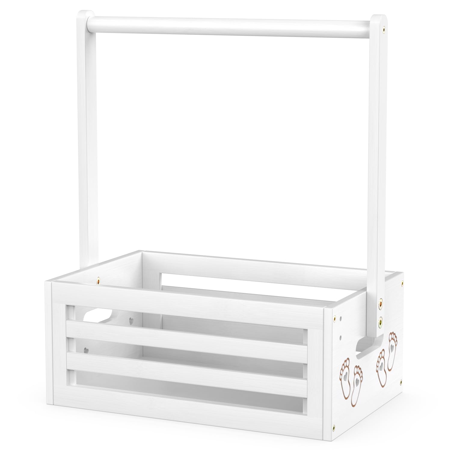 - Reliable Material: This baby shower crate with hangers bar for crafts and letters decorations are made of quality solid bamboo material, safe, sturdy and reliable, without any burr, won't hurt you and your little one's hands, and the bamboo panels on both sides are designed with baby feet hollow patterns, making it more unique. This baby gift basket is not only practical, but also a art